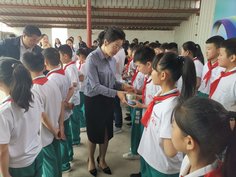 三源建設(shè)副總王煥麗為優(yōu)秀學生送上學習用品和節(jié)日的祝福,孩子們收到節(jié)日禮品,露出天真的笑臉。